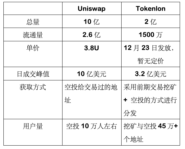 TK:首先在平台方面,通过对比发现Tokenlon平台币 LON相较于UNI具有更多优势,在持币用户数差别不大情况下,LON目前只有UNI流通盘1/15,而且LON采用前期交易挖矿预热、后期空投的方式,极大地保证持仓公平性,LON稀缺性更为明显。